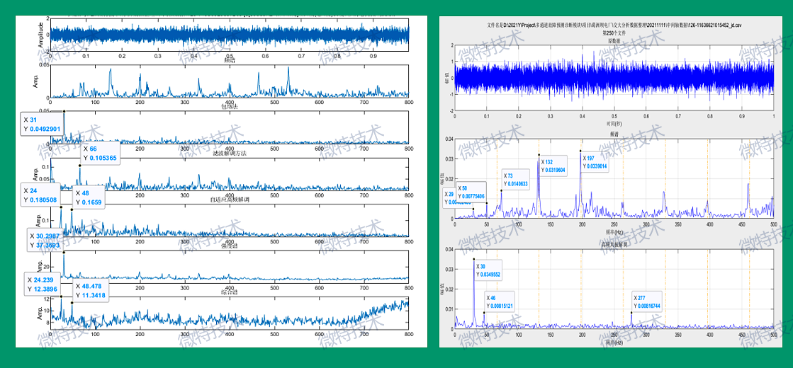 微特創(chuàng)新研發(fā)的起重機旋轉(zhuǎn)機構(gòu)故障診斷綜合譜診斷方法,從保障起重機運行安全的試驗數(shù)據(jù)多維度集成分析角度開展相關(guān)核心技術(shù)研究:針對起重機變轉(zhuǎn)速振動數(shù)據(jù)分析,研發(fā)相應(yīng)的多維度分析算法、通用動態(tài)數(shù)據(jù)分析算法和故障特征提取算法。